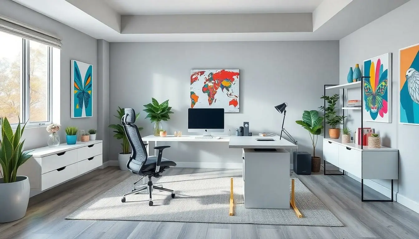 Creating an inspiring home office involves blending aesthetics with functionality. Color choice plays a crucial role, with calming blues and vibrant yellows enhancing mood and creativity. Unique artworks can transform a blank wall, sparking inspiration during long work hours.